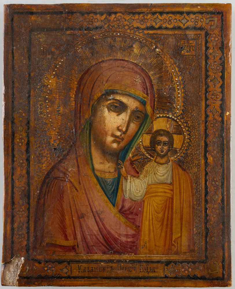 Icona, raffigurante Madonna con Bambino. Arte ortodossa, XIX secolo. Cm...