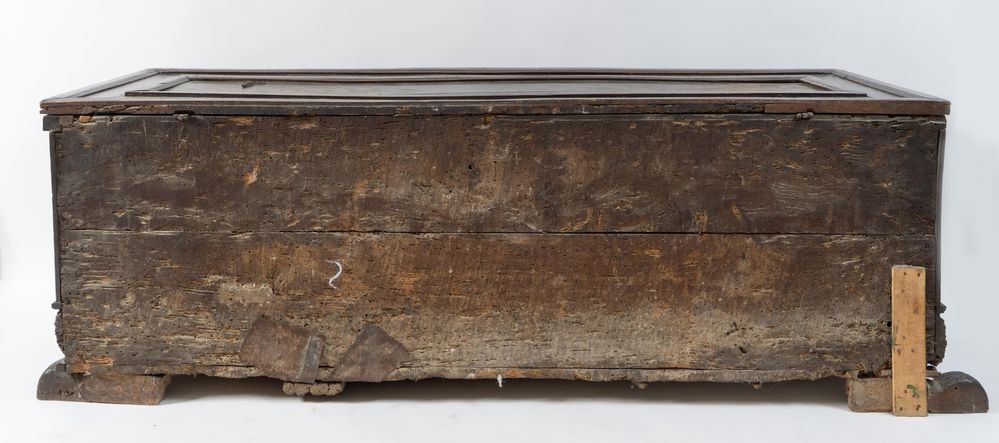 Cassapanca in massello di noce. Bologna/Imola, fine del XVI secolo - inizio...