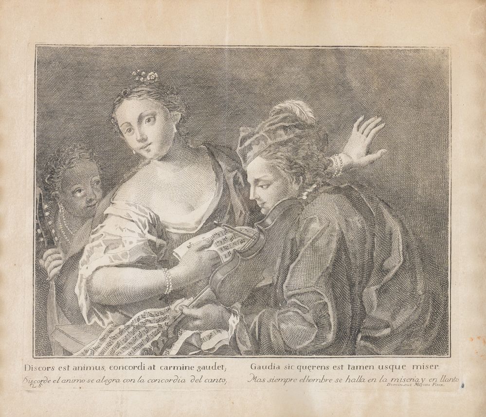 DOMENICO MAGGIOTTO (Venezia 1712 – 1794) "Scena di musica". Incisione. Cm 25x31,5.