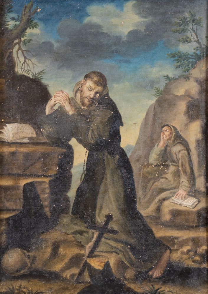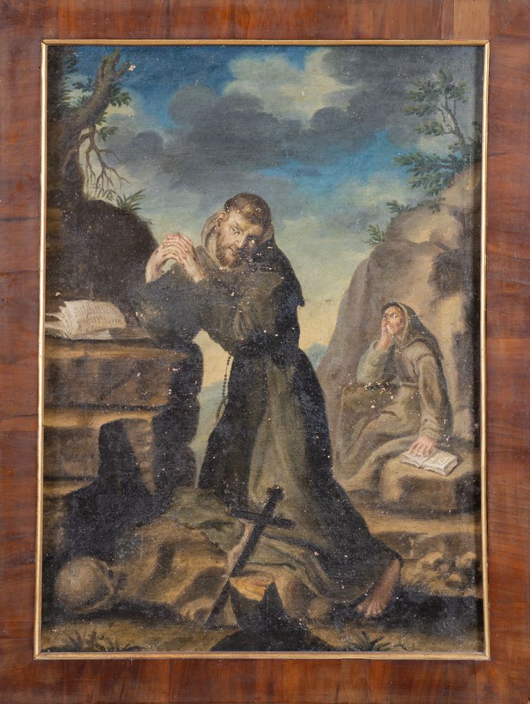 Maestro del XVIII secolo. "San Francesco in estasi". Olio su tela. Cm 72x52.