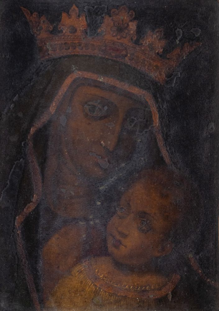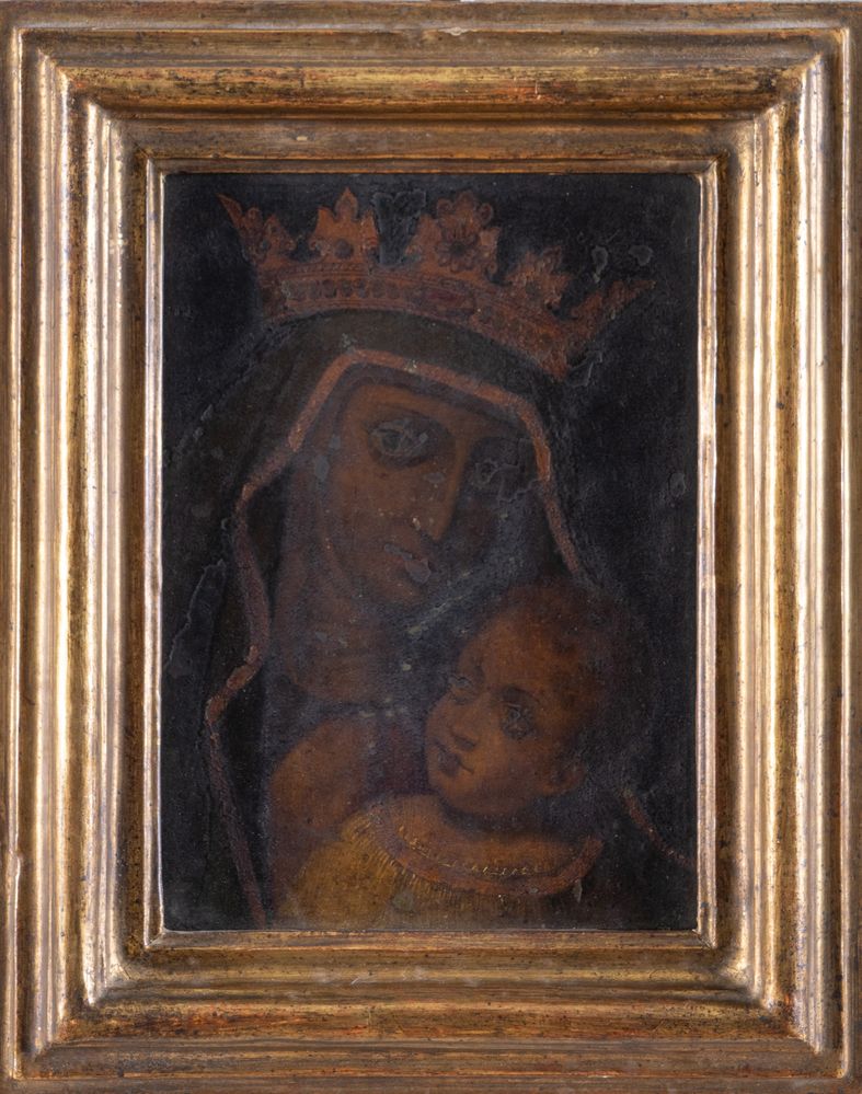 Maestro del XVII - XVIII secolo. "Madonna di San Luca". Dipinto su rame. Cm 24,5x19,5.