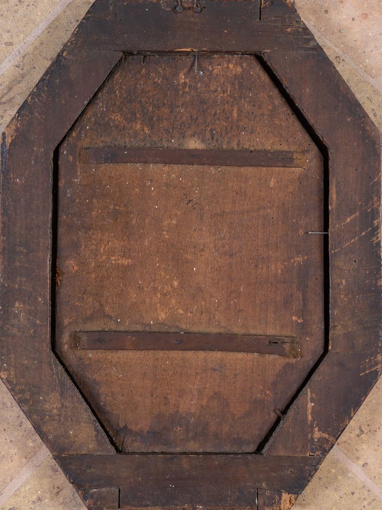 Maestro del XVIII secolo. “Santa”. Olio su tavola ottagonale. Cm 39x26,5. (cornice coeva)