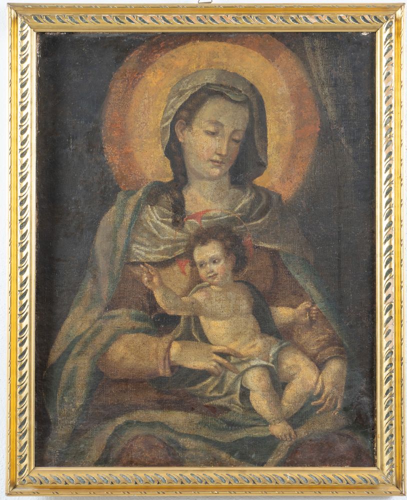Maestro del XVII secolo. “Madonna con Bambino”. Olio su tela. Cm 75x58,5.
