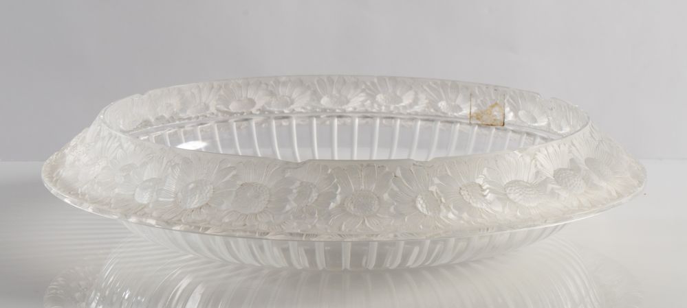 LALIQUE Ciotola "Marguerite" in cristallo. Cm 6,5x33. Alla base reca marchio...