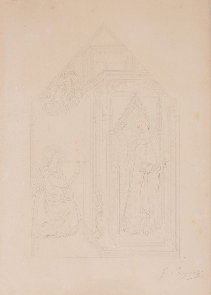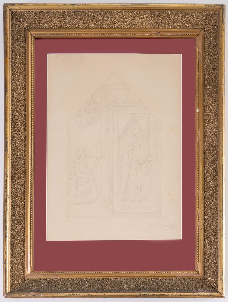 GIUSEPPE BEZZUOLI (Firenze 1784 – 1855) “Annunciazione". Disegno a matita su carta. Opera firmata in basso a destra. Cm 36x25,5.