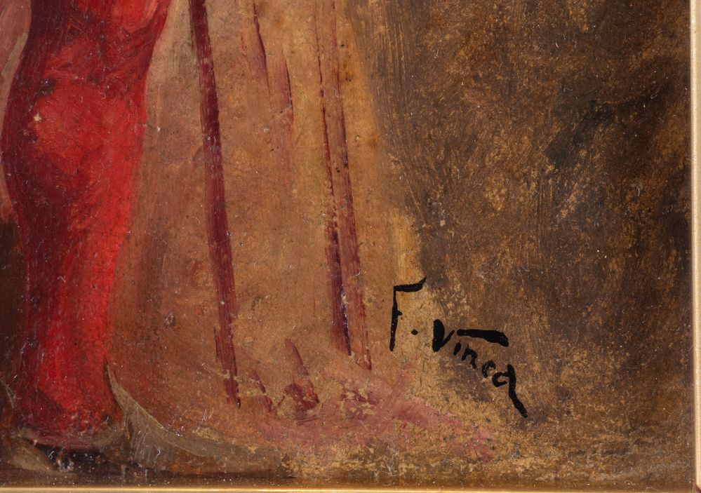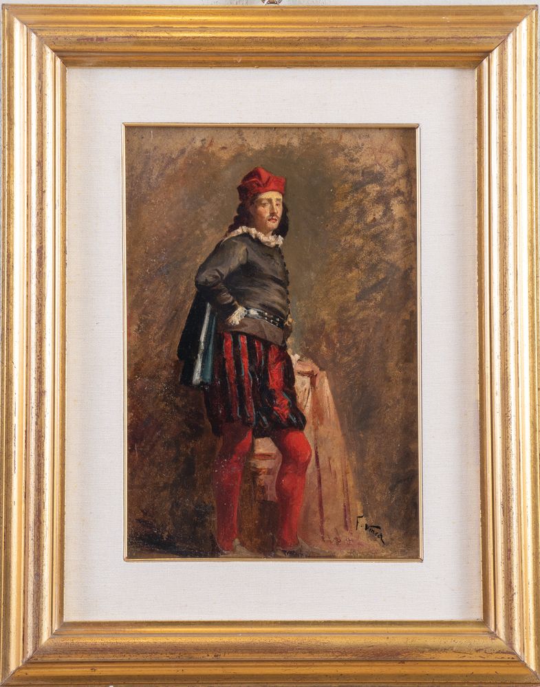 FRANCESCO VINEA (Forlì 1845 – Firenze 1902) "Ritratto di nobiluomo". Olio su cartone. Cm 39x27,5. Opera firmata in basso a destra F. Vinea.