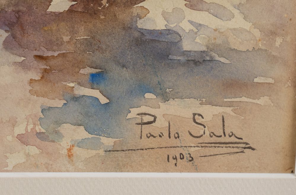 PAOLO SALA (Milano 1859 - 1924) "Lavandaie", 1903. Acquerello su carta. Cm...