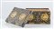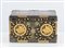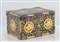 Scatola in lacca con motivi a farfalla dorati e angoli in ottone cesellato....