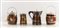 Servizio in rovere e Sheffield, composto da quattro elementi. Manifattura inglese, XX secolo. Boccale termico cm 21x diametro 14; boccale cm 14,5x diametro 10,5; 2 porta ghiaccio cadauno di cm 17x diametro 13.