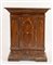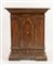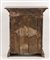 Credenza in massello di noce. Emilia, metà del XVII secolo. Impreziosito da bugne mistilinee. Originariamente pensile da muro. Cm 121,5x102x38,5.