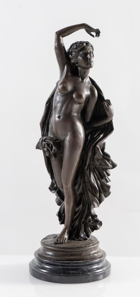 SCULTURA IN BRONZO, raffigurante fanciulla. Francia, fine del XIX secolo.