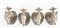 Lotto composto di quattro portacandele a forma di testa di cavallo in metallo argentato. Arte orientale, XX secolo. Cm 14x11x11.