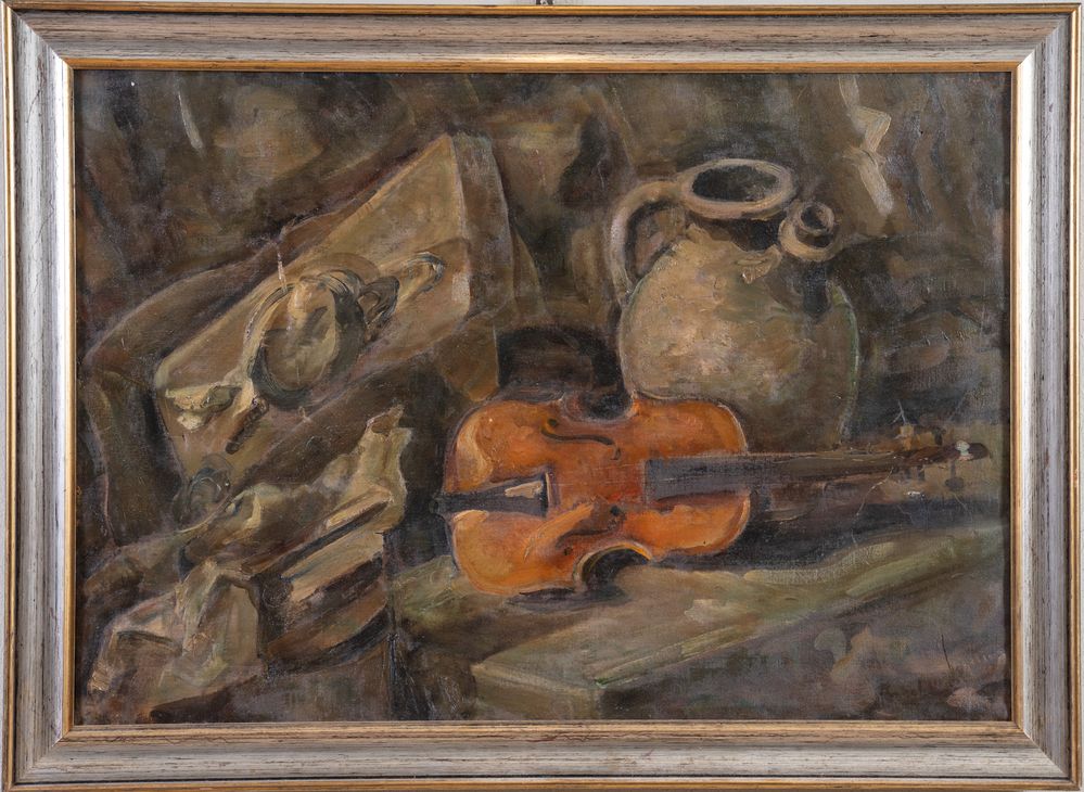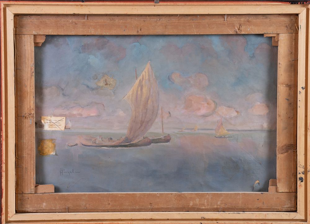 PIETRO ANGELINI (Forlì 1888 – Roma 1977) "Natura morta/Siesta al mare". Olio su tela. Cm 70x100. Opera firmata in basso a destra P. Angelini. Opera rectoversa. Opera acquistata direttamente dall'artista dall'attuale proprietà. (difetti)