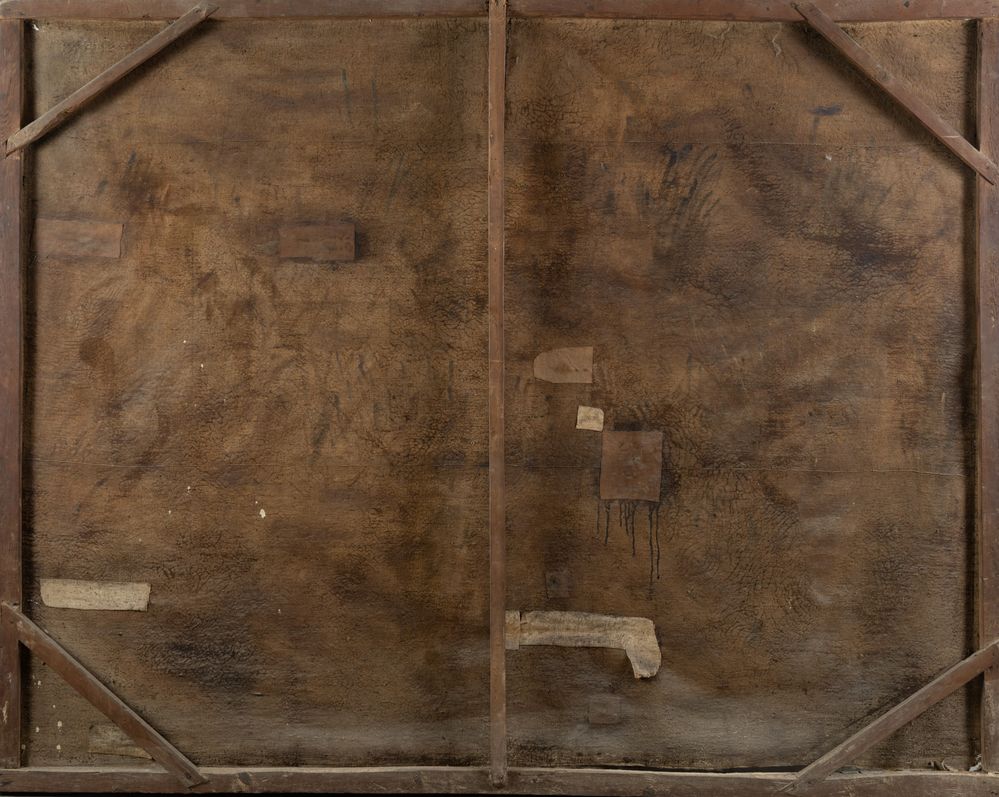 Maestro del XVII secolo. "Giuditta e Oloferne". Olio su tela. Cm 177,5x228,5. (difetti)