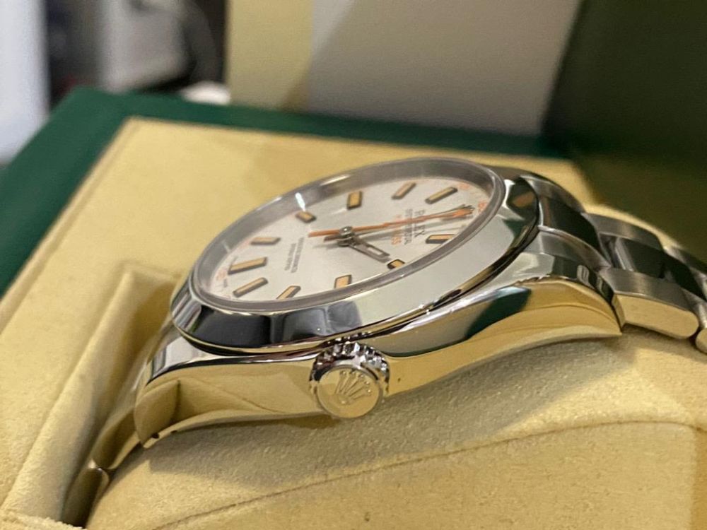 Marca Rolex Modello (Orologio) Milgauss Numero di referenza 116400 Anno di produzione 2008/’2011 Carica Automatico Materiale della cassa Acciaio Materiale cinturino Acciaio Condizione Ottimo Corredo documenti originali Carica Automatico Cassa Materiale della cassa Acciaio Diametro 40 mm Impermeabile 10 ATM Materiale lunetta Acciaio Vetro Vetro zaffiro Quadrante bianco Numeri sul quadrante Senza numeri Cinturino Materiale cinturino Acciaio Colore cinturino Acciaio Chiusura Déployante Materiale chiusura Acciaio