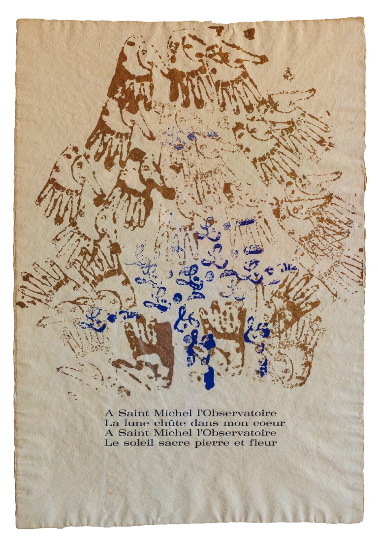 in basso al centro 'A Saint Michel l'Observatoire La lune chute dans mon coeur A Saint Michel l'Observatoire La soleil sacre pierre et fleur'