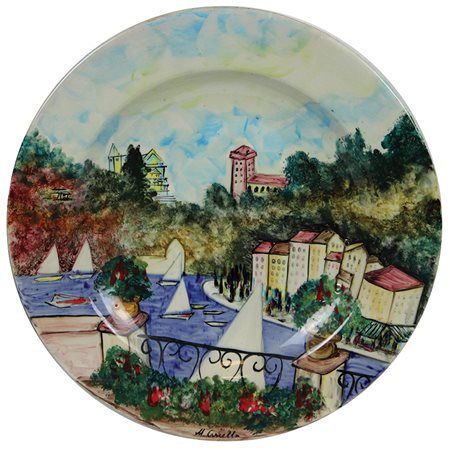 Cascella Michele Portofino piatto in ceramica, diam. cm. 52, es. prova d'autore firmato sul fronte, realizzato da Ceramiche Rossicone Mllano, certificato di garanzia Ceramiche Rossicone al retro (tiratura 60 esemplari + 10 prove d'autore)