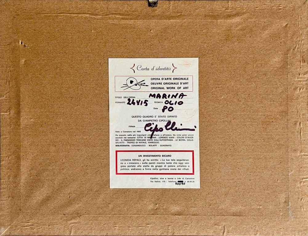 sul retro riporta la 'Carta d'identità' in cui si indica l'autenticità, la firma dell'artista e la data 1980