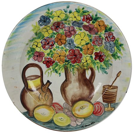 Cascella Michele Vaso di fiori piatto in ceramica, diam. cm. 52, es. prova d'autore firmato sul fronte, realizzato da Ceramiche Rossicone Mllano, (tiratura 60 esemplari + 10 prove d'autore)
