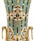 realizzato in bronzo e mostra un'eccezionale e abbondante decorazione di smaltocloisonnè. Il bronzo dorato sul fondo blu e la ricchezza policroma del motivo rimandano a un immaginario e a un'ispirazione provenienti dall'Oriente. Il vaso è affiancato da due manici in bronzo dorato con teste di gatto, rifinite da artigli su cui si appoggiano. Notiamo nella forma e nella decorazione un'ispirazione orientale ma soprattutto eclettica, caratteristica della tendenza artistica della Francia del Secondo Impero. Infatti, Constant Sevin si ispirò allo stile greco per la forma in anfora e a motivi appartenenti al repertorio decorativo arabo o persiano per la decorazione, mentre i manici con teste di gatto tendono a ricordare l'Egitto.