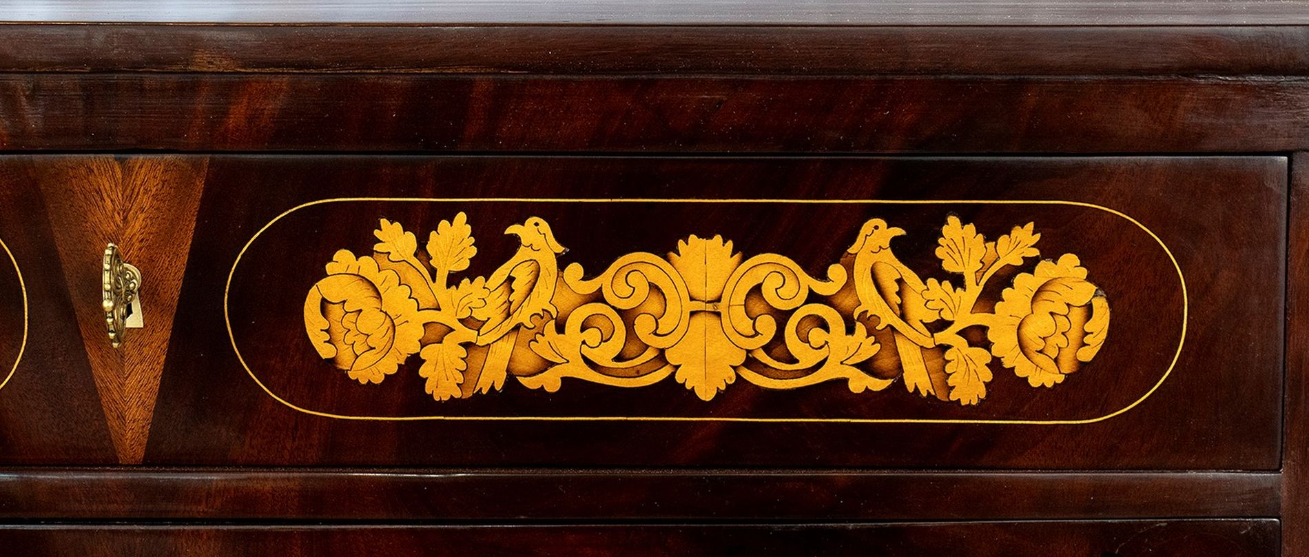 Secretaire Carlo X in mogano intarsiato - Olanda, XIX secolo