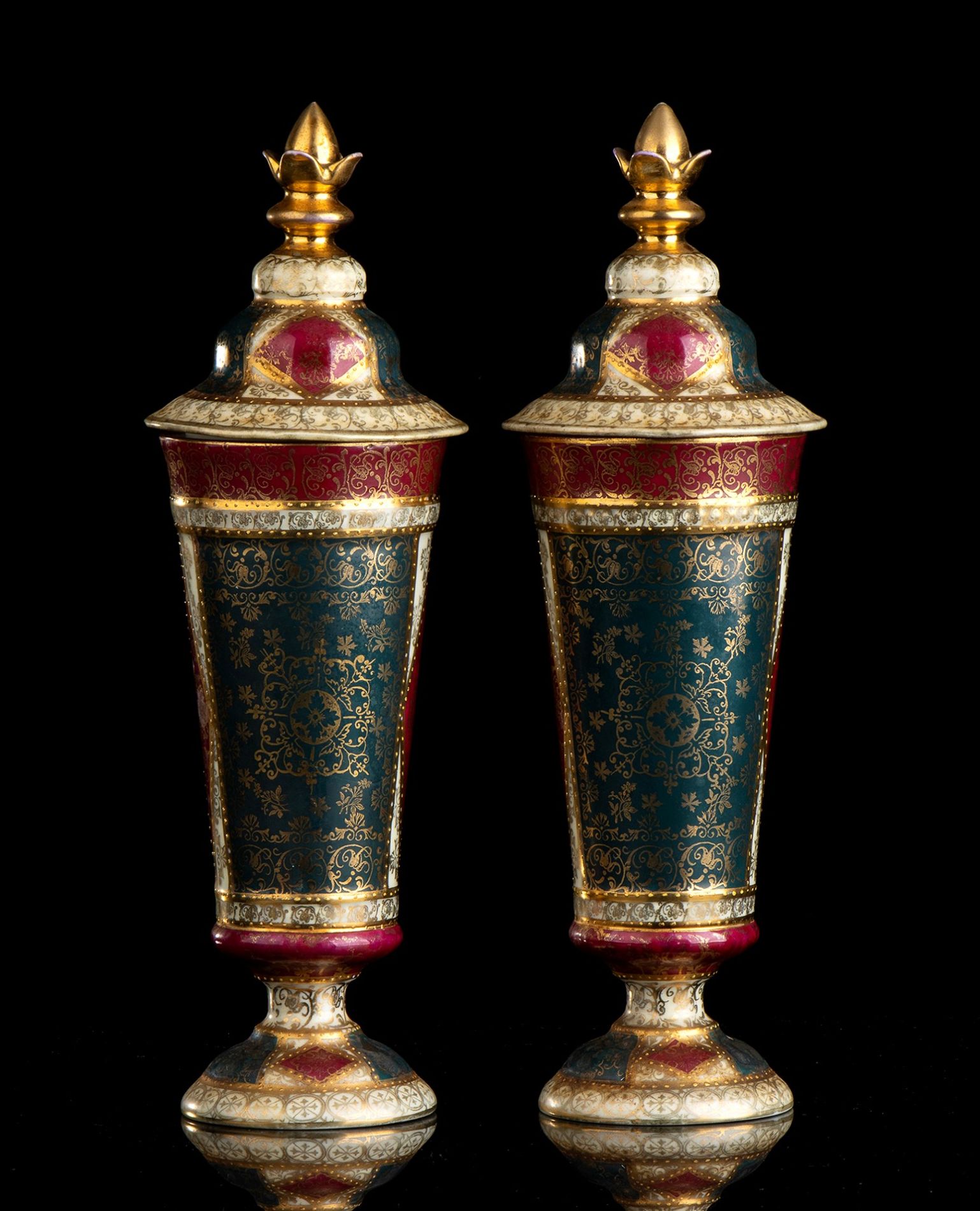 Coppia di vasi dipinti e dorati - VIENNA, 1870 circa