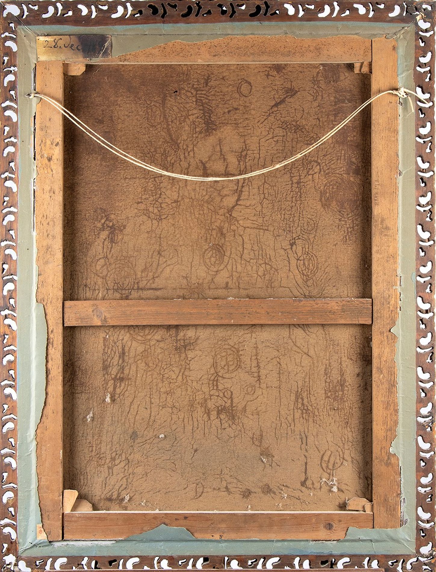 Stato di conservazione: *** discreto. (tela con un foro nella parte superiore).