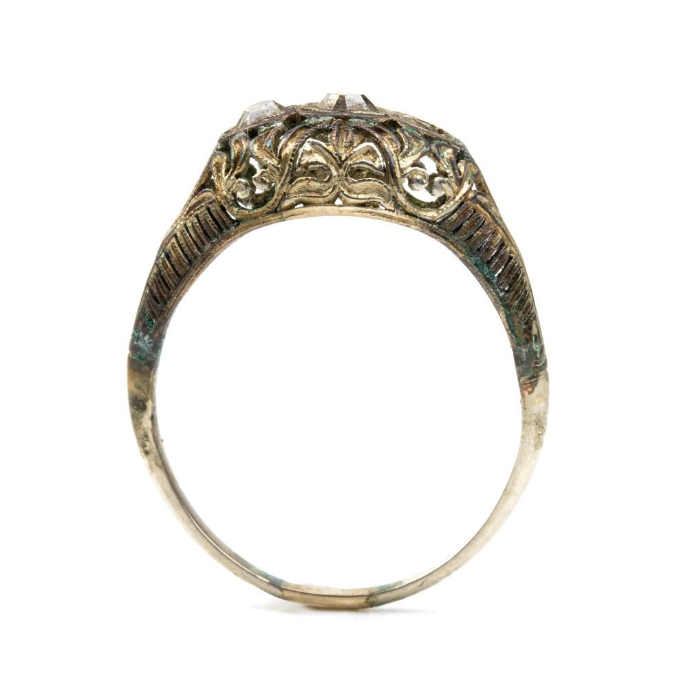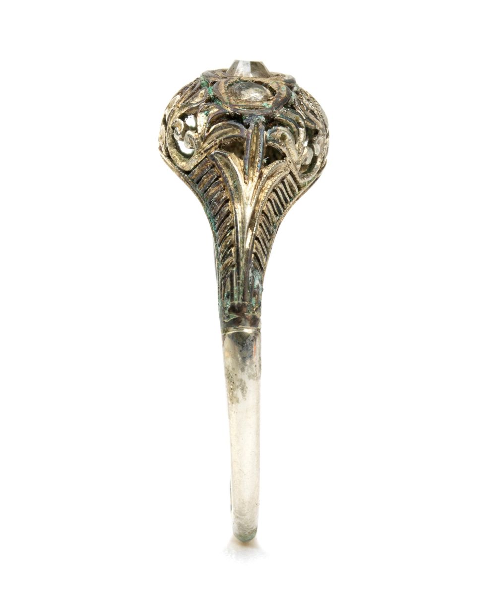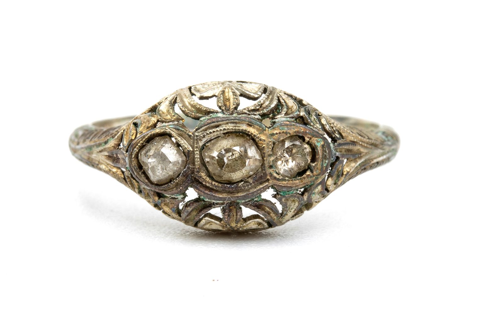 traforato a motivi vegetali, incastonato con 3 diamanti taglio a rosa.