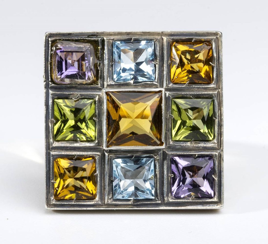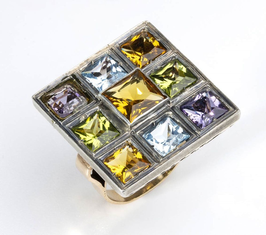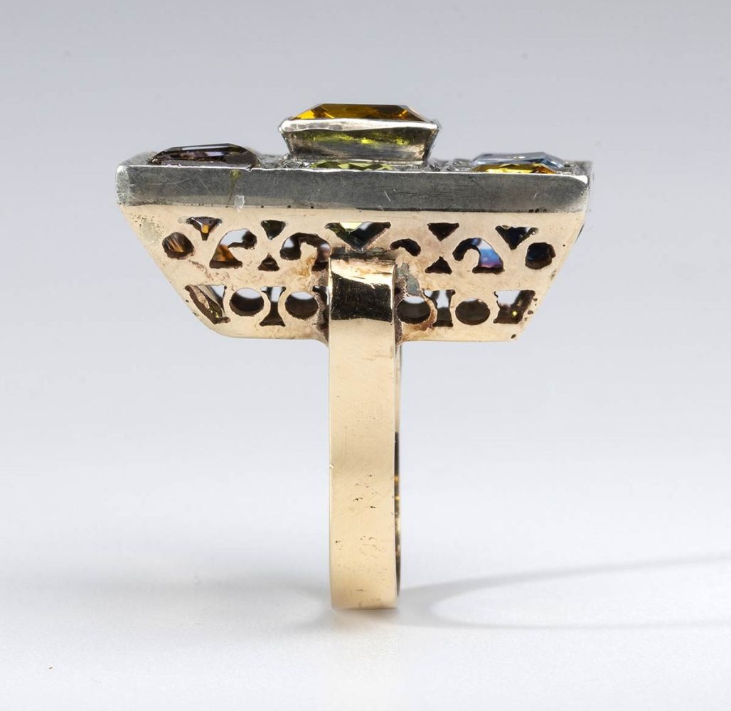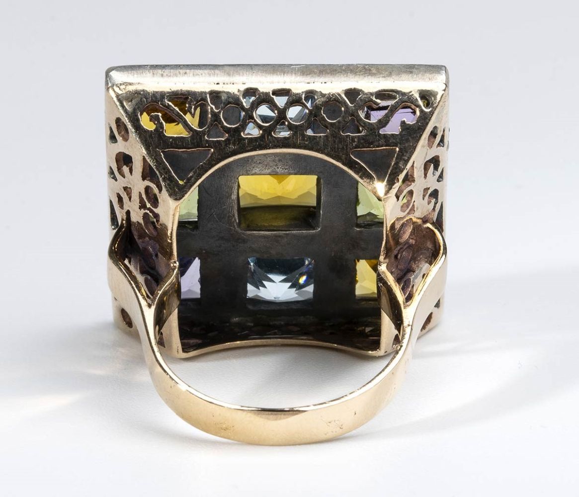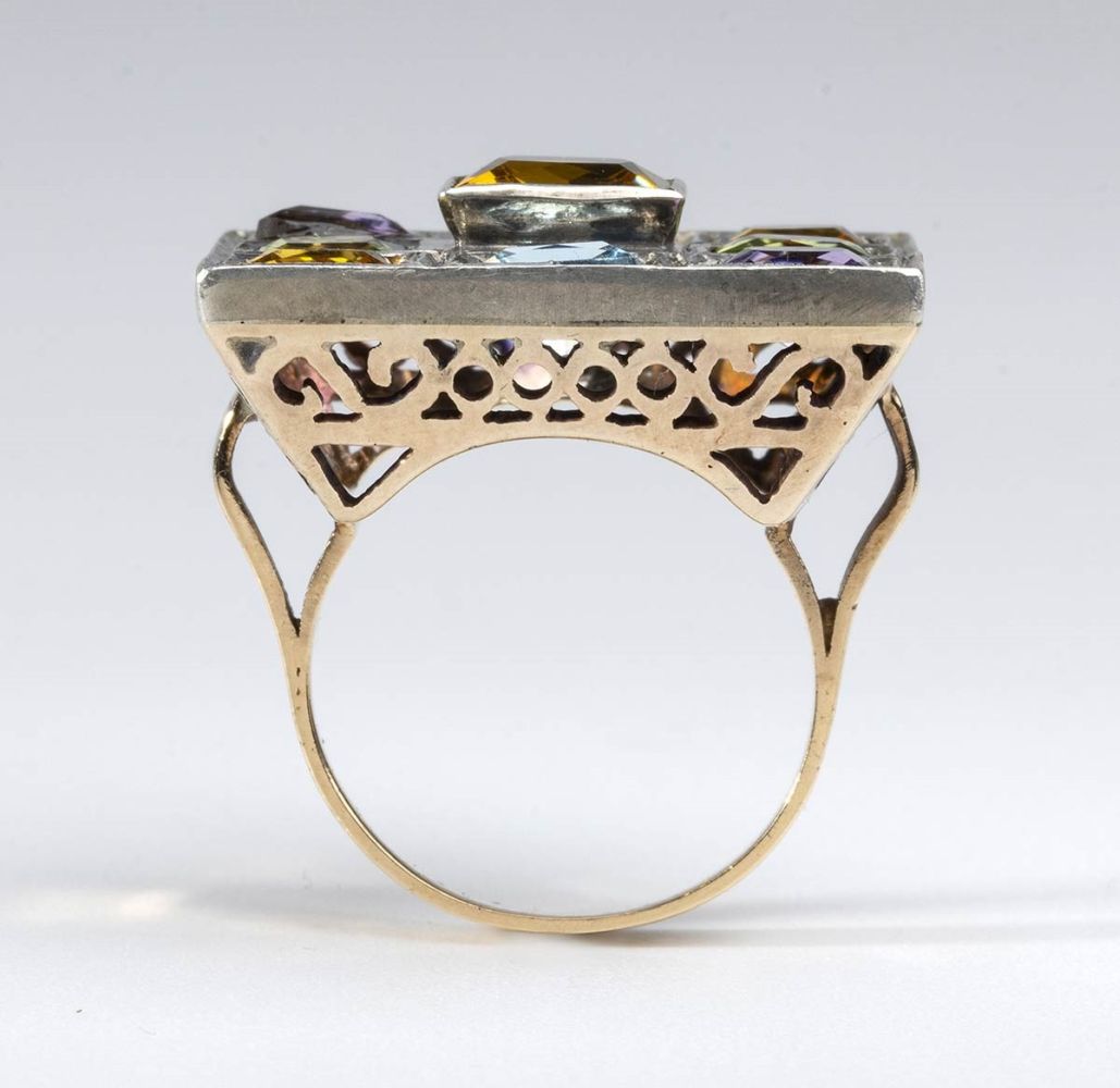 Anello in oro, argento e pietre di colore