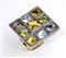 oro giallo 14k e argento 800/1000. Parte superiore di forma geometrica incastonata con gemme di colore (quarzi citrini, topazi azzurri, peridoti, ametiste). Punzonato "14k".