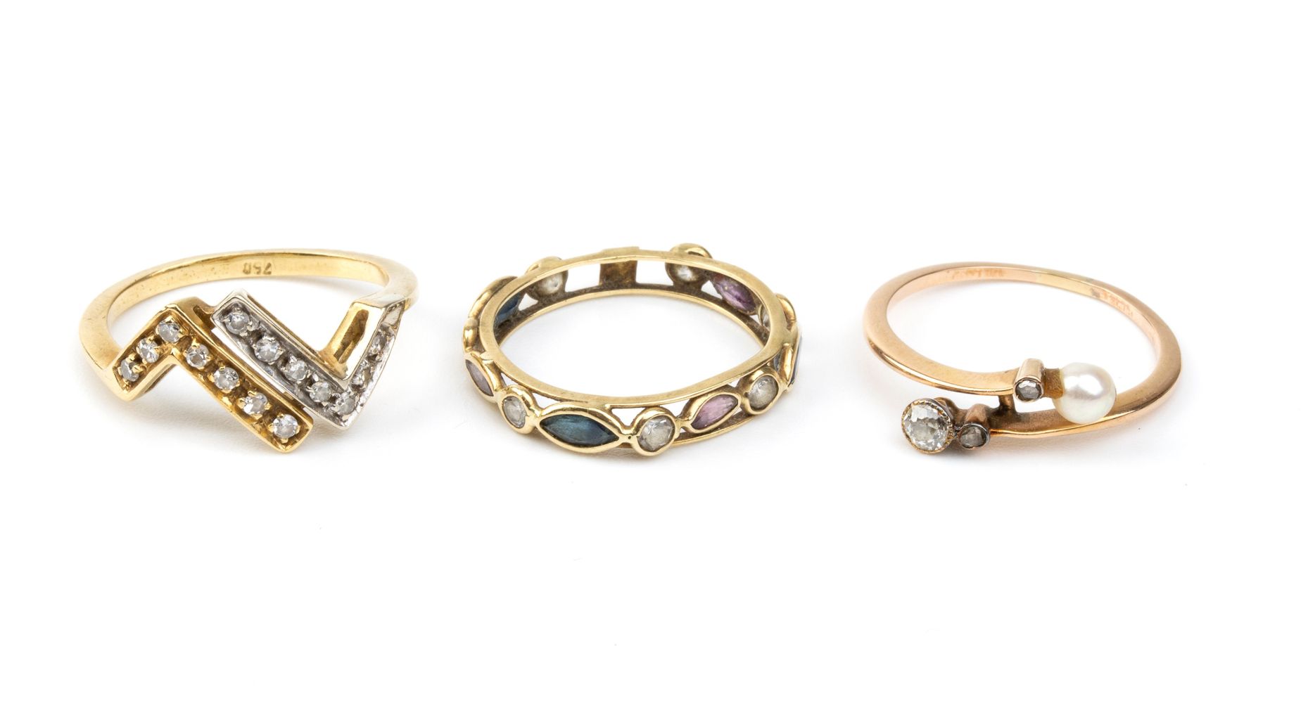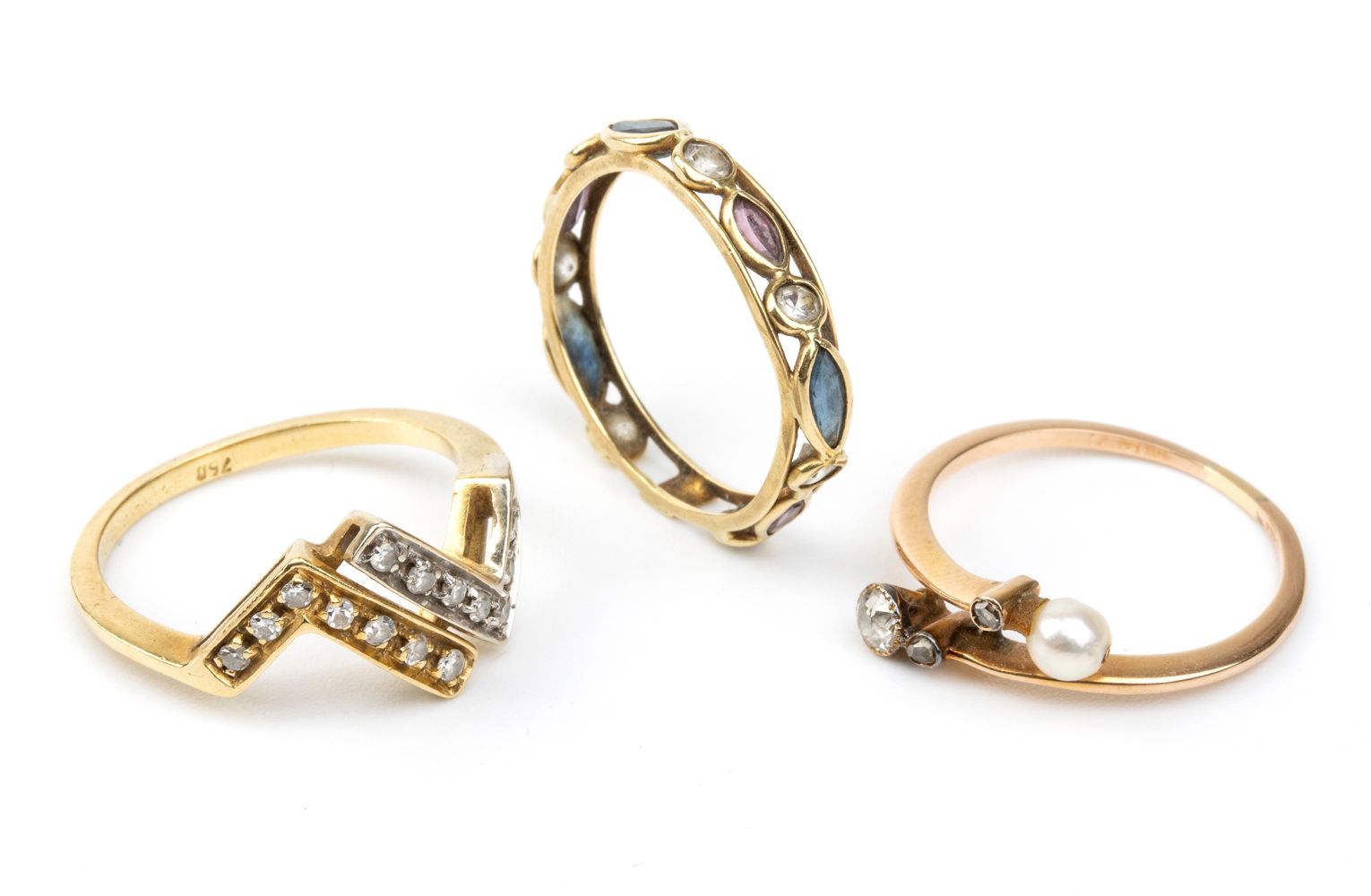 Tre anelli in oro con pietre preziose