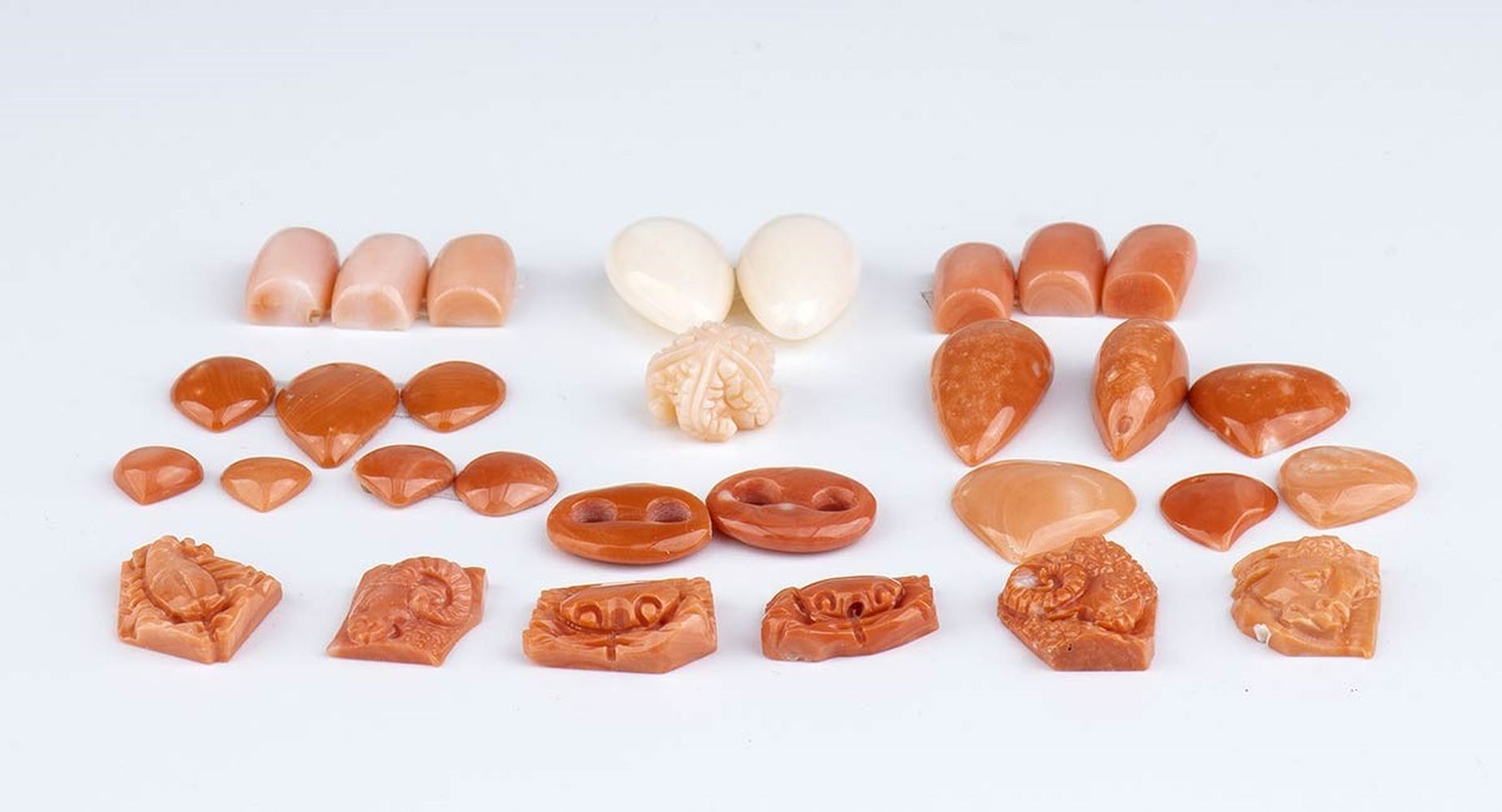 Elementi in corallo cerasuolo e corallo rosa non montati