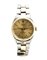 cassa in acciaio e oro giallo 18k, quadrante champagne con indici a bastone firmato Oyster Perpetual, plexiglass. Movimento a carica automatica. Bracciale oyster.