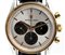 cassa in acciaio, lunetta in acciaio, quadrante argenté con indici  a bastone applicati e tre quadranti sussidiari neri. Movimento a carica manuale. Cinturino in pelle, fibbia in acciaio.