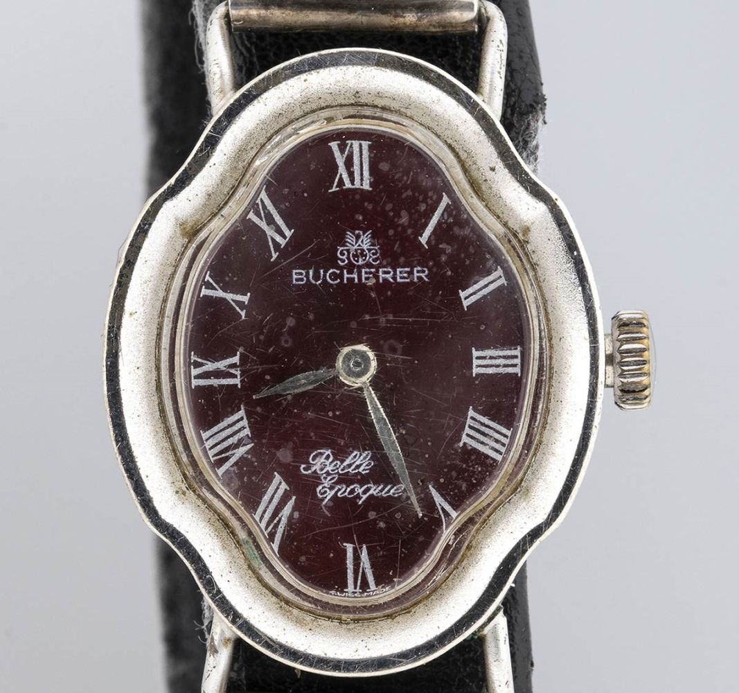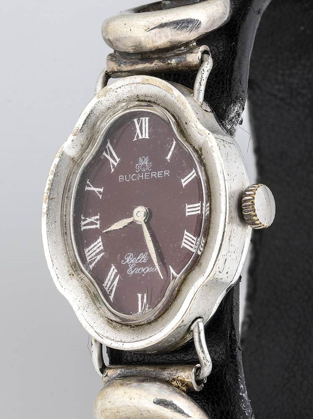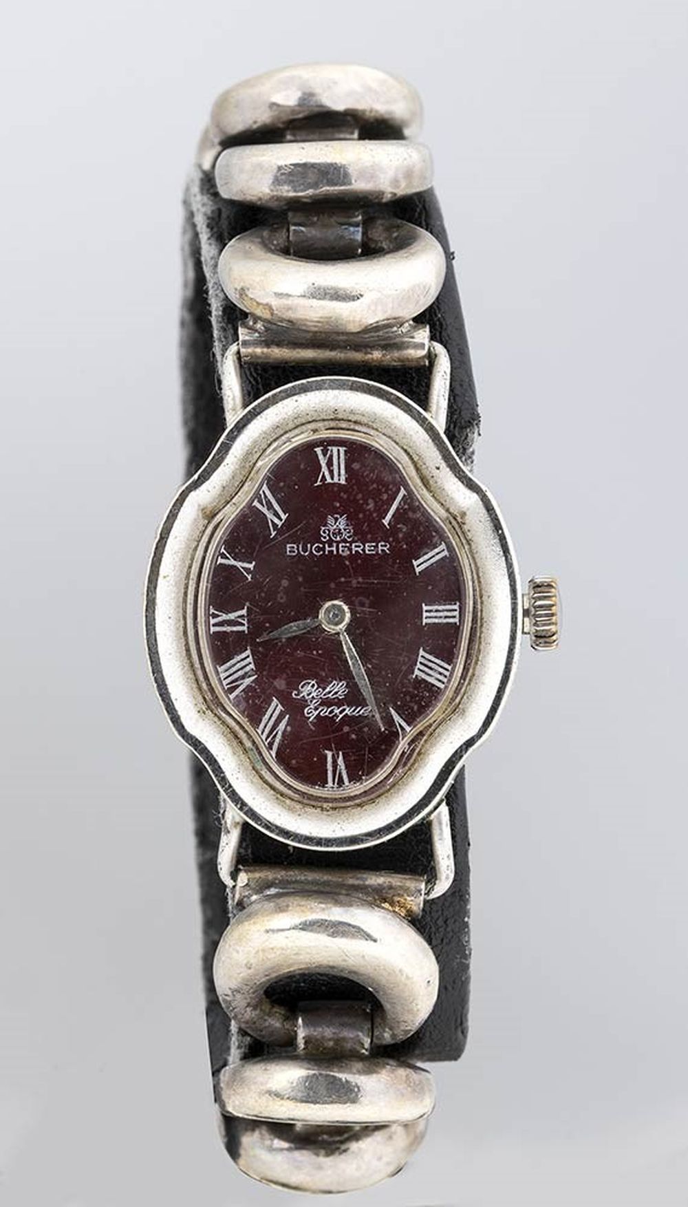 cassa e bracciale in argento, quadrante con numeri arabi firmato "Bucherer Belle Epoque". Movimento a carica manuale.