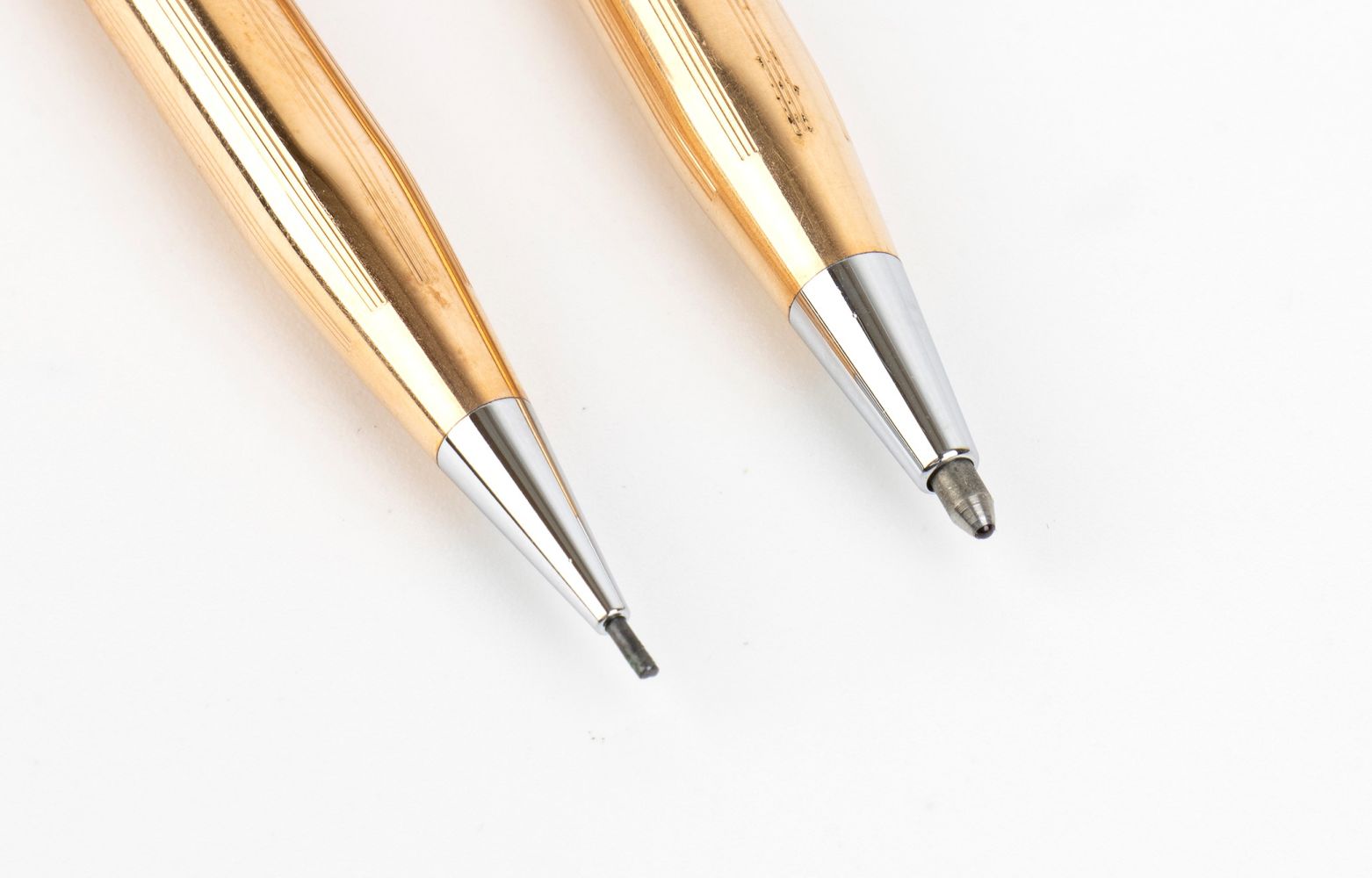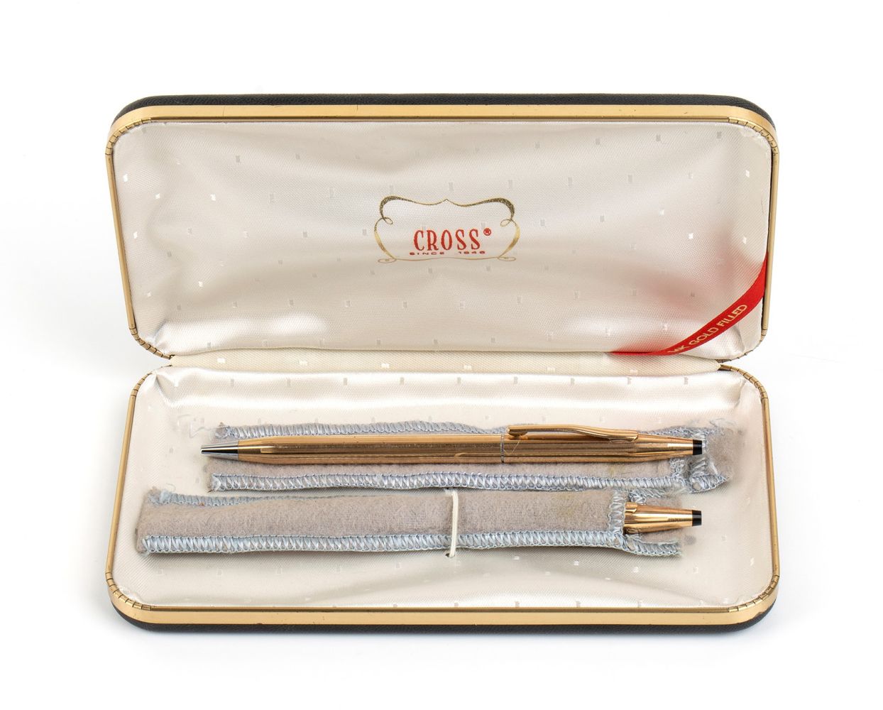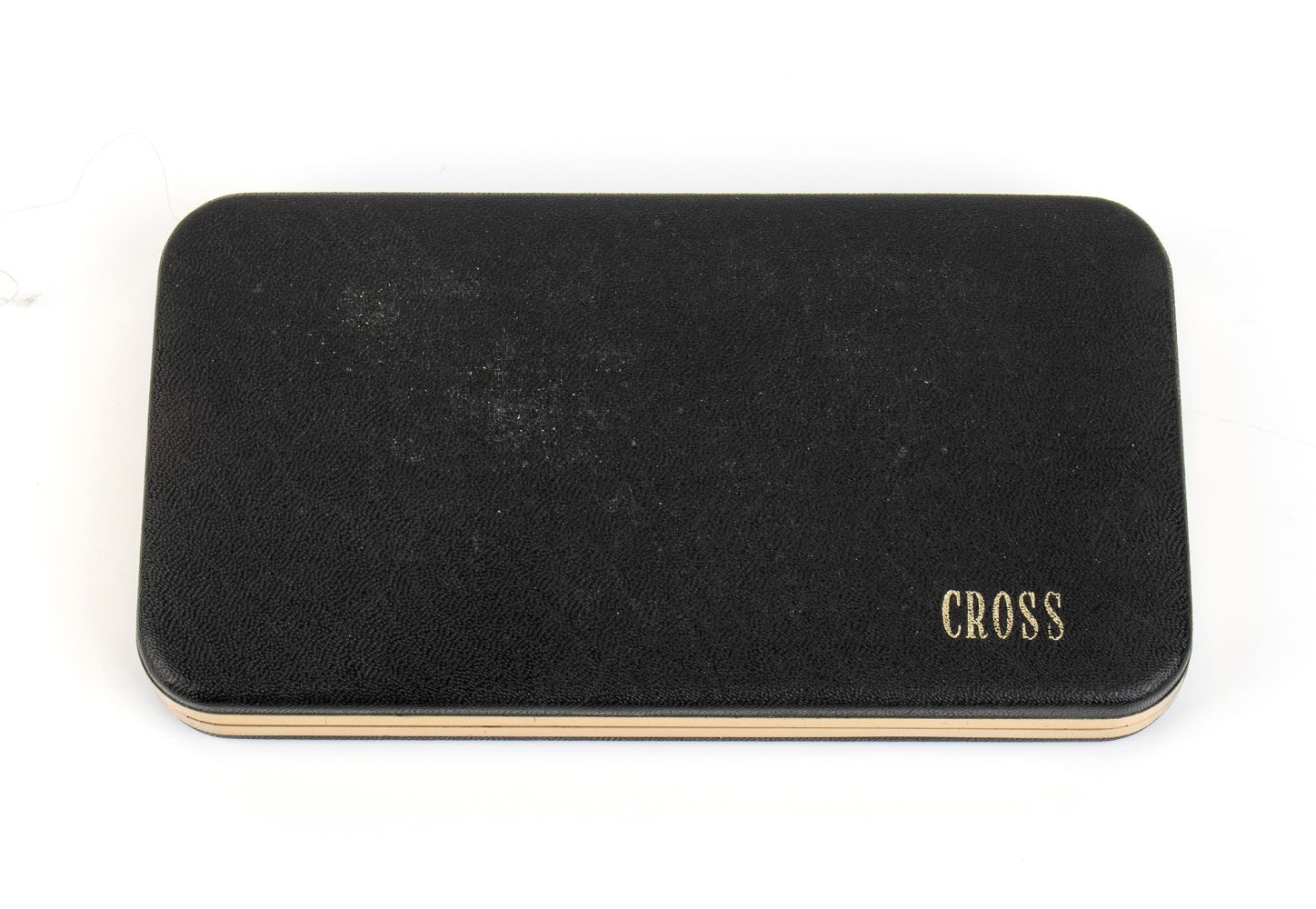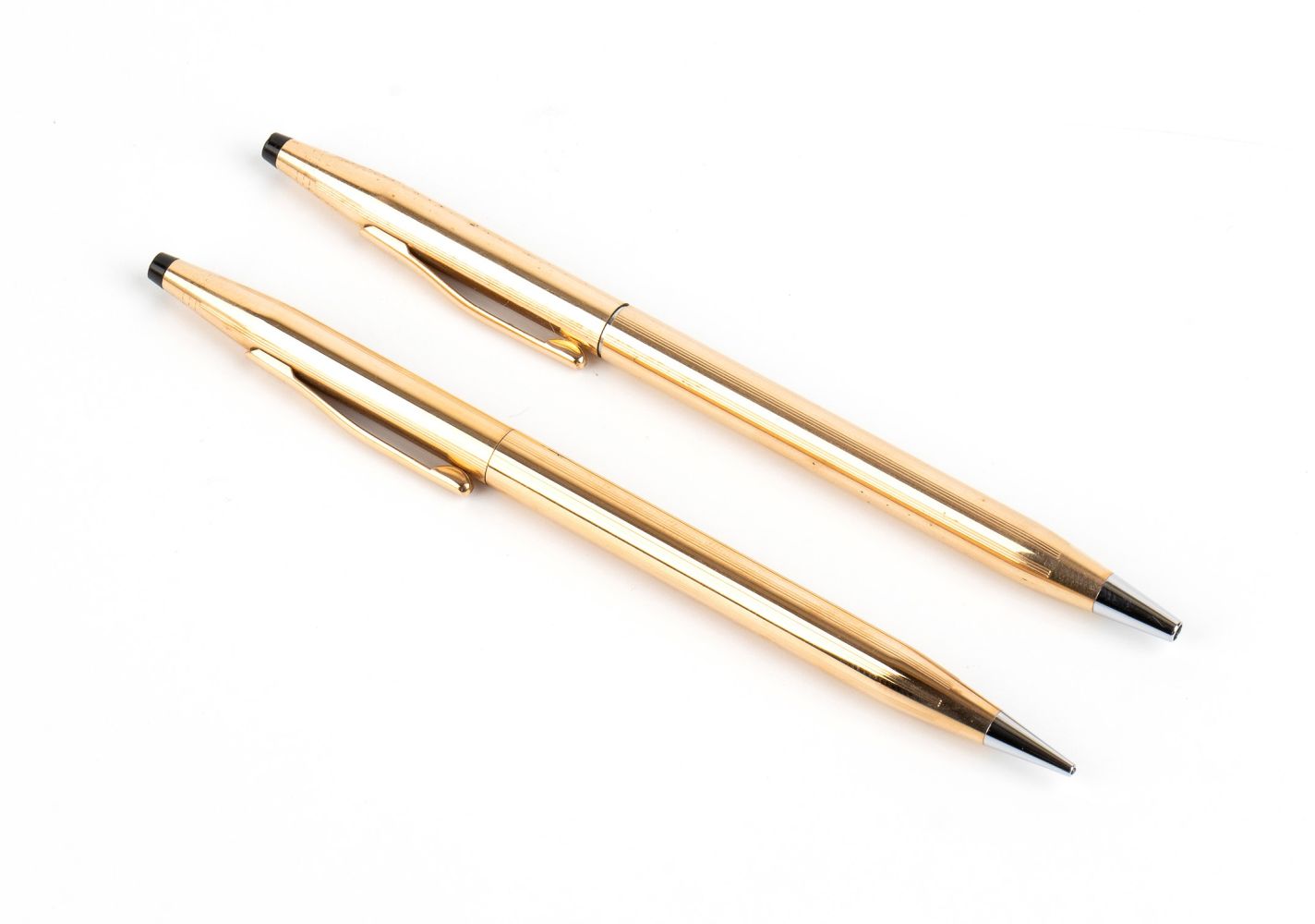 b) due penne a sfera CROSS in custodia originale. Lunghezza 13,4 cm. Peso totale 37,1 gr.