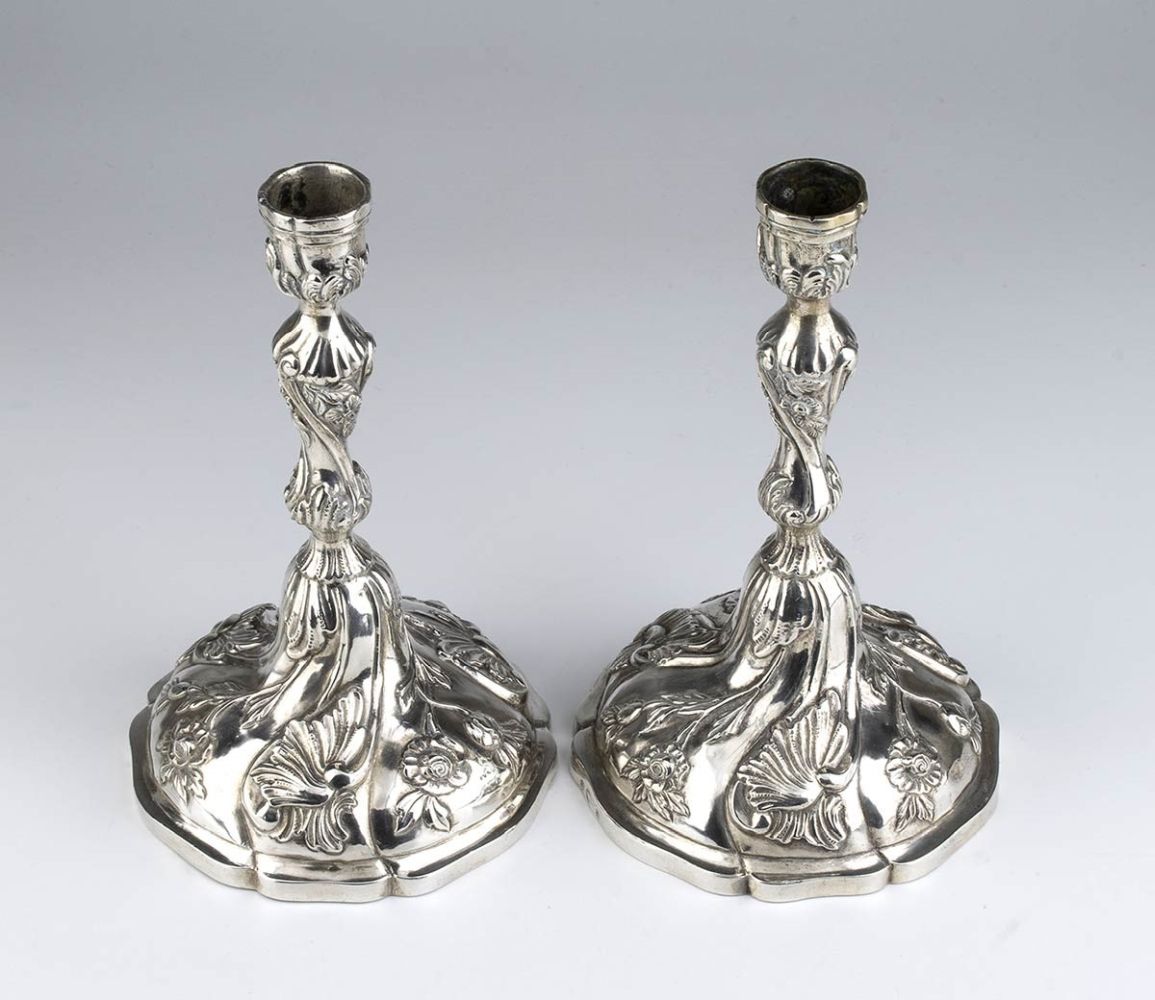 base e fusto a torchon con decori floreali ed a pellacce. Marchi non identificati.