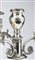 base circolare con fusto scanalato dal quale si dipartono tre braccia a forma di pesce. Argento 800/1000 punzonato con i marchi in uso in Italia dal 1872 al 1935.