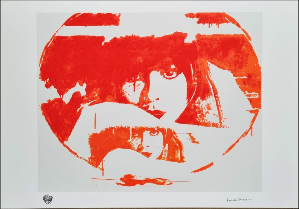 FIORONI GIOSETTA Roma 1932 "Doppio liberty orange" Serigrafia polimaterica e carborundum a 12 colori, su carta cm 100x70. Firmata sul fronte in basso a destra, tiratura 13/99 a sinistra. Certificato di autenticità a cura dell'Archivio Parise Fioroni.