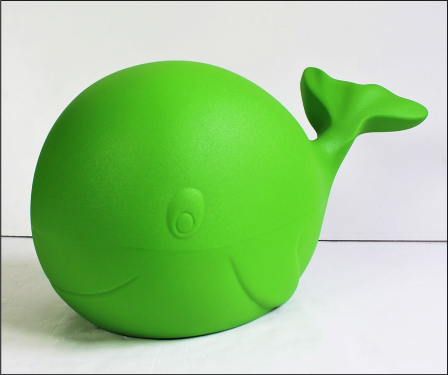 RIZZETTI CARLO Bruxelles 1969 "The Rainbow Whale" Scultura in plastica cm 60x29x28. Edizione Italia. Esemplare numero 24 di 300 Green. Autentca dell'artista su fotografia. Titolo, numerazione e firma posti sotto l'opera.