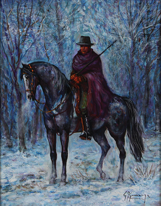 Gonzaga Giovan Francesco Buttero sulla neve, 1994 olio su tela, cm. 50x40...