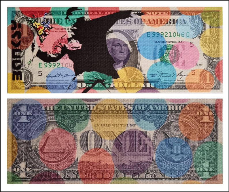 BANKSY Regno Unito XX sec. "Hirst dots dollar" BANKSY (AFTER) - Serigrafia originale su tela cm 24x12. Edizione: 25 COA.