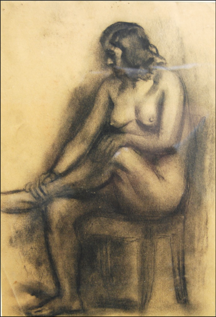 TOZZI MARIO Fossombrone 1895 - Francia 1979 "Nudino in posa" Carbone su carta beige cm 25x35 del 1919. Certificato di autenticità su foto a cura dell'Archivio Tozzi.