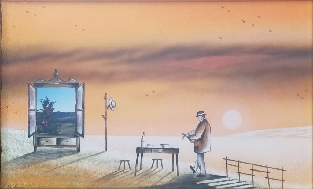 DE GROSSI GIANLUCA Imola 1970 "Una realtà nascosta" Tecnica mista su tela cm 40x25. Firmato sul fronte in basso a sinistra, sul retro titolo e firma.