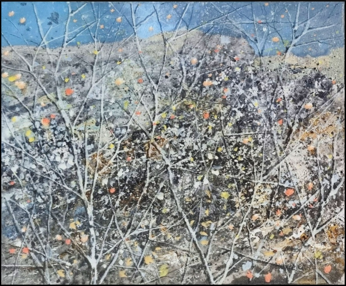 BANCHIERI GIUSEPPE Milano 1927 - Ronchi di Massa 1994 "Senza titolo" Olio su tela cm 30x25 del 1977. Firmato e datato sul fronte in basso a destra. Sul retro firma e ritagli di giornale della mostra "Il Vicolo-Sezione d'arte".