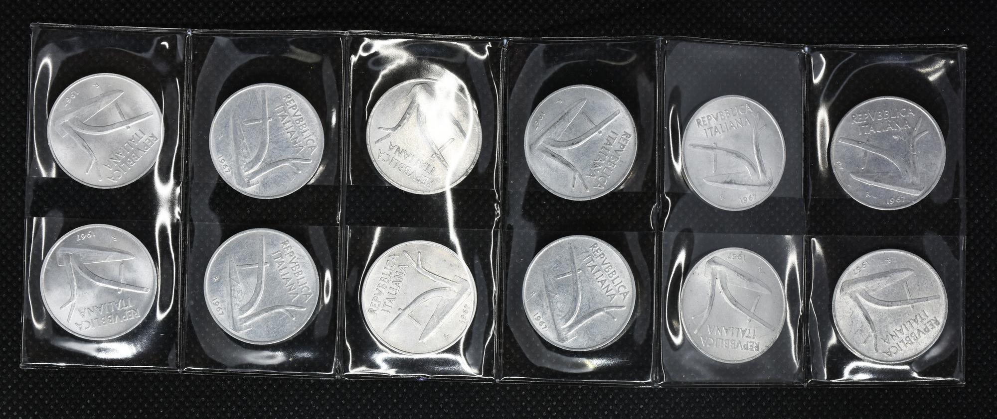 LOTTO DI 12 MONETE REPUBBLICA ITALIANA da 10 lire 1967