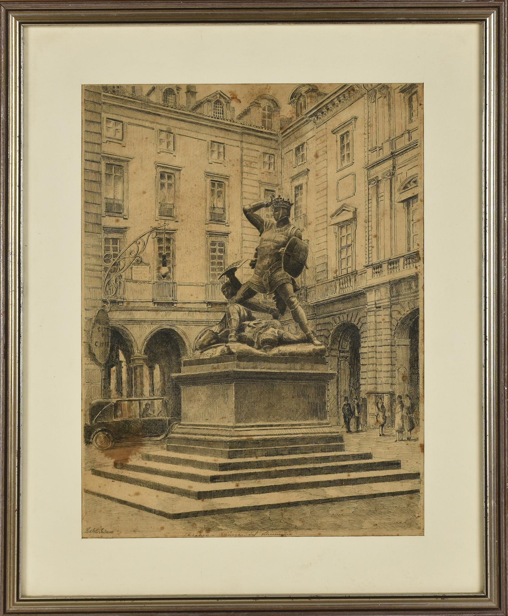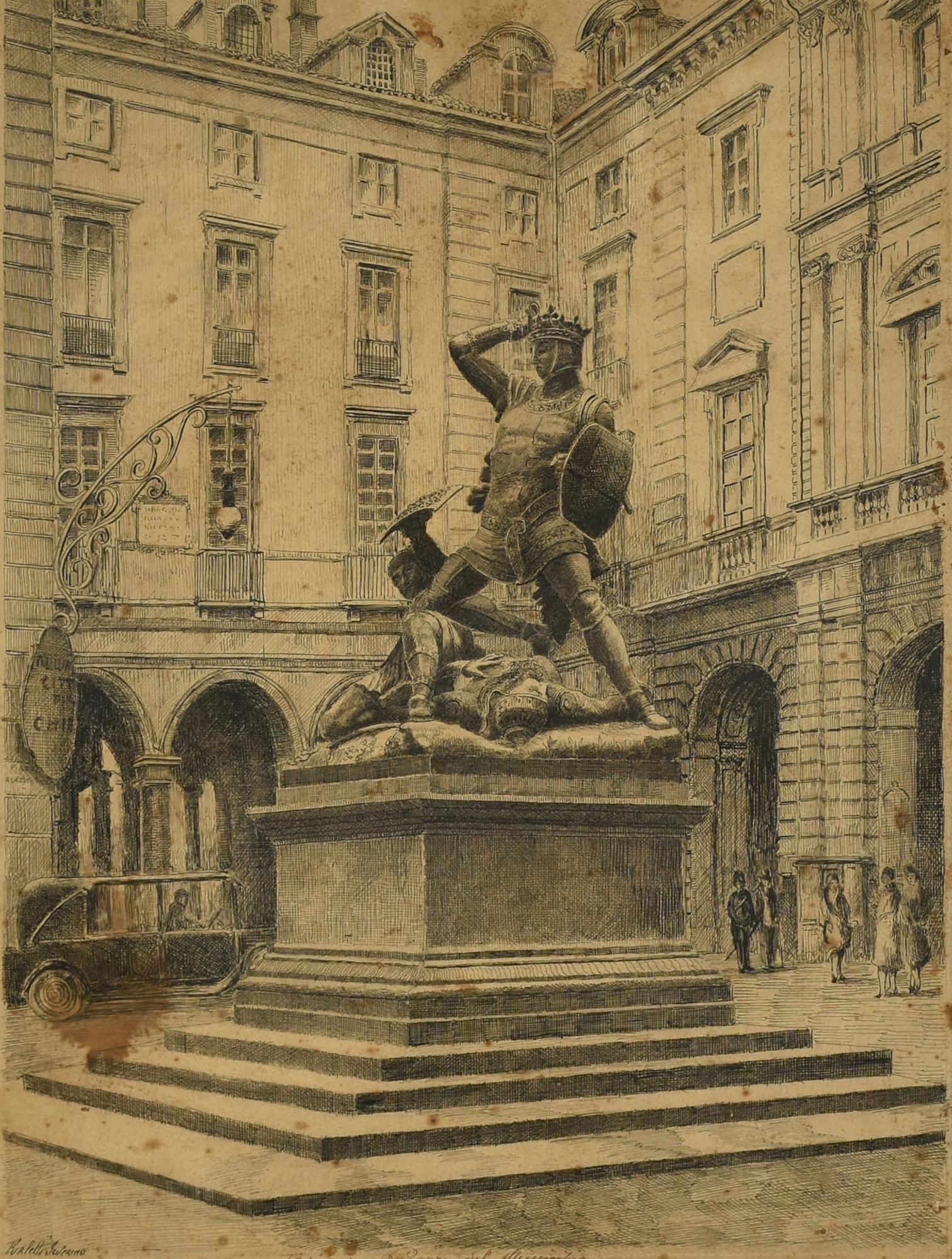 Severino Furletti TORINO PIAZZA DEL MUNICIPIO incisione su carta, battuta cm...