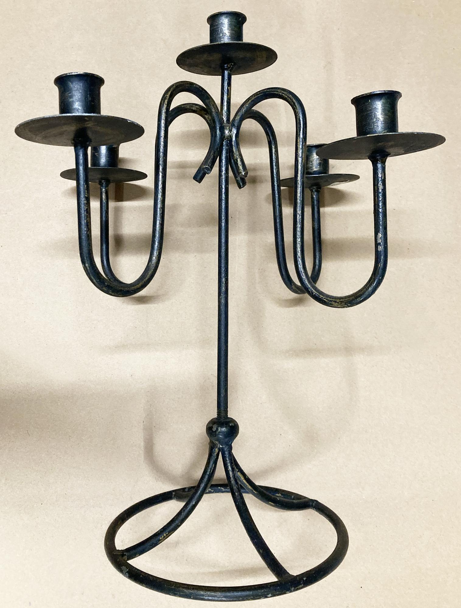 CANDELABRO IN FERRO di manifattura cinese a 5 fuochi, composto da base e...