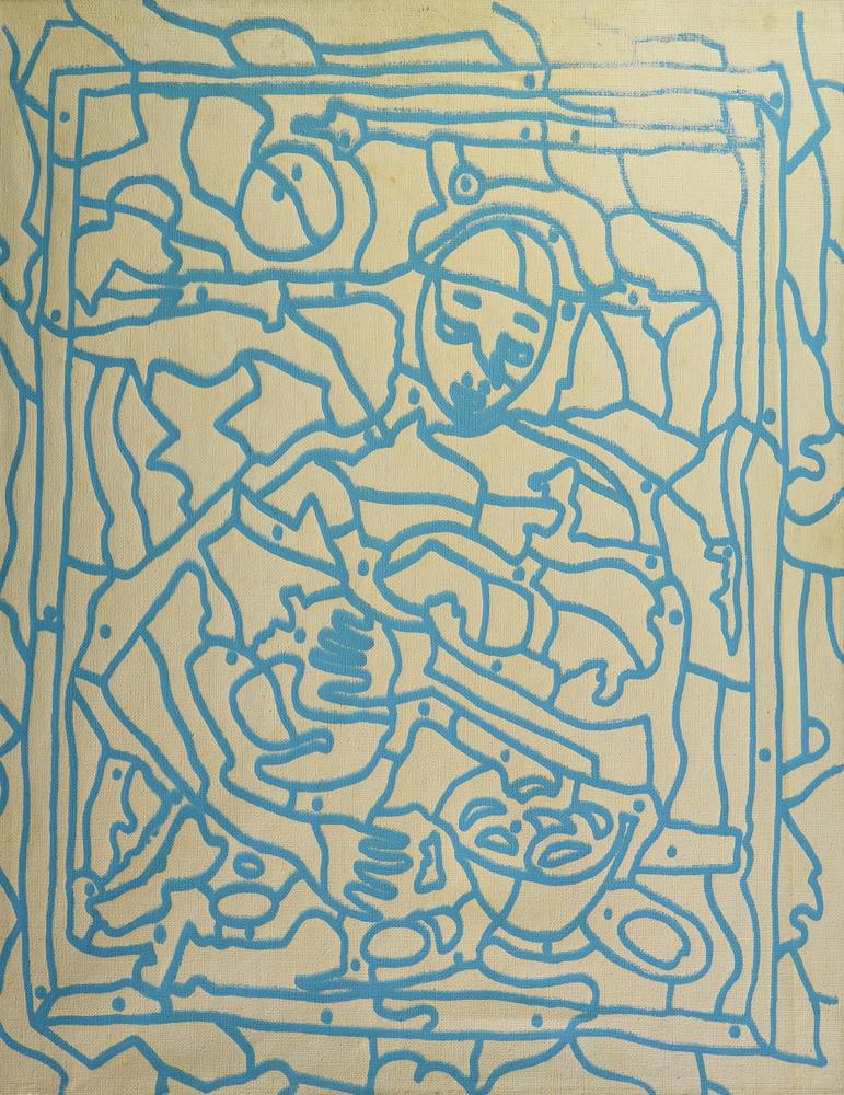 Aldo Mondino SENZA TITOLO (1964) serigrafia su tela, cm 45x35 timbro A....