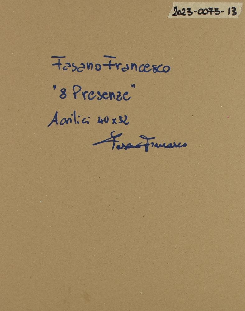 Francesco Fasano 8 PRESENZE acrilico su cartoncino, cm 40x32 sul retro: firma...